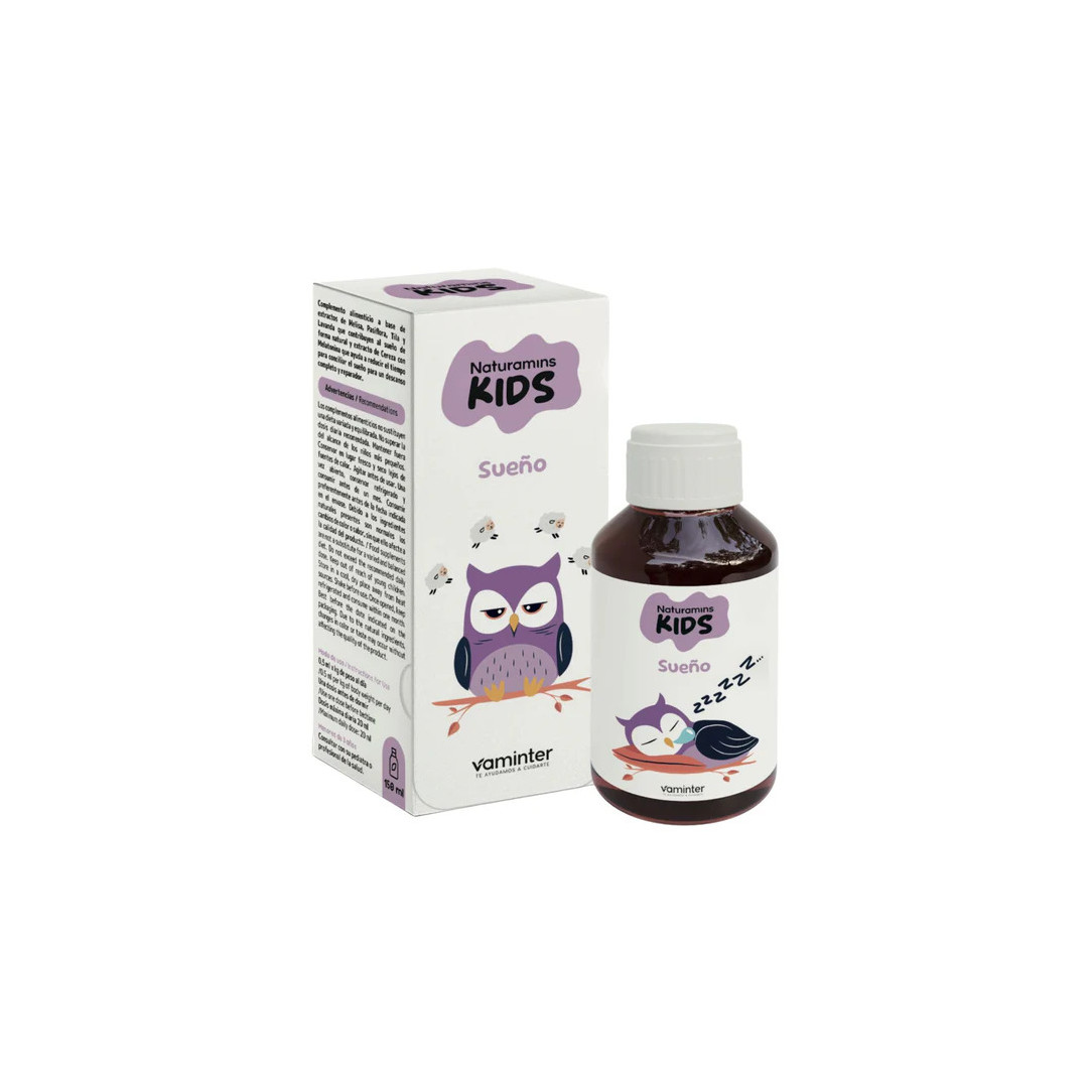 Kids Jarabe Sueño de Naturamins es un complemento alimenticio infantil elaborado con extractos naturales de melisa, pasiflora, tila y lavanda, plantas tradicionalmente utilizadas para favorecer la relajación y el descanso. Además, contiene extracto de cereza con melatonina vegetal, que ayuda a reducir el tiempo necesario para conciliar el sueño y favorece un descanso profundo y reparador. Su fórmula está enriquecida con fibra prebiótica Sunfiber®, magnesio y vitamina B6, que contribuyen al bienestar digestivo y nervioso.