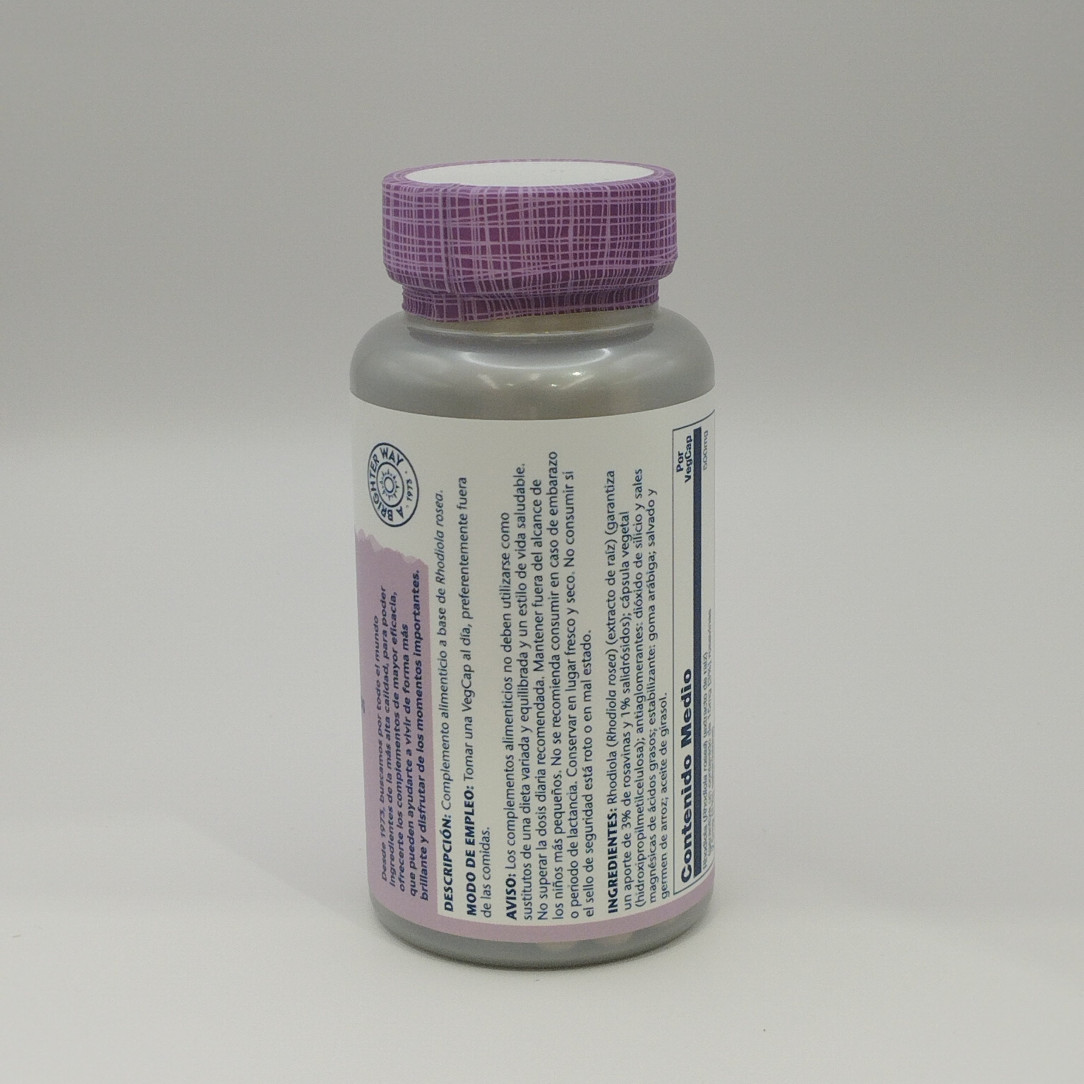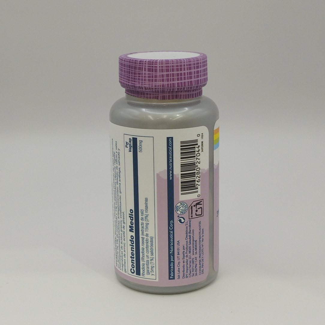 SolarayComplemento alimenticio con extracto estandarizado de Rhodiola rosea (500mg), planta adaptógena que contribuye a afrontar períodos de estrés físico y mental. Fórmula con rosavinas y salidrósidos.