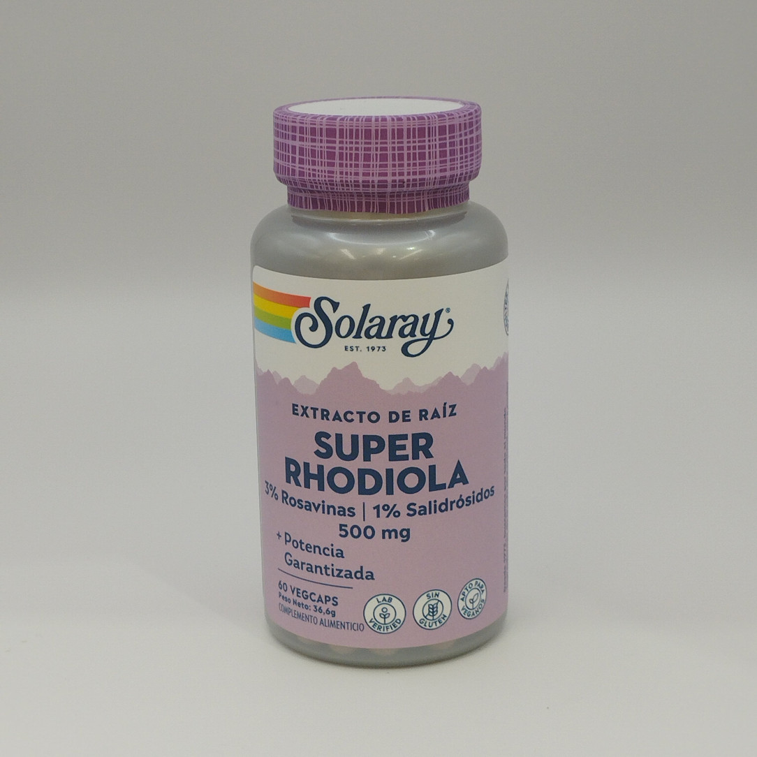 Rhodiola Super de Solaray es un complemento alimenticio a base de extracto concentrado de raíz de Rhodiola rosea, una planta adaptógena tradicionalmente utilizada para ayudar al organismo a afrontar periodos de estrés físico y mental. Su fórmula estandarizada garantiza un aporte de rosavinas y salidrósidos.