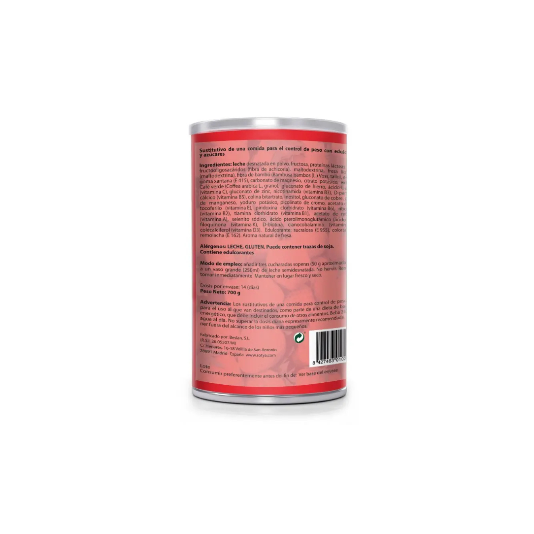 El Batido Saciante de Fresa de Sotya es un complemento alimenticio ideal como sustitutivo de una comida en dietas de control de peso. Elaborado con leche desnatada, proteínas lácteas, vitaminas, minerales, fresa liofilizada y aromas naturales, este delicioso batido se mezcla fácilmente con leche semidesnatada para proporcionar un batido equilibrado y refrescante. Es una opción perfecta incluso en los días más calurosos del verano y puede tomarse también como merienda.