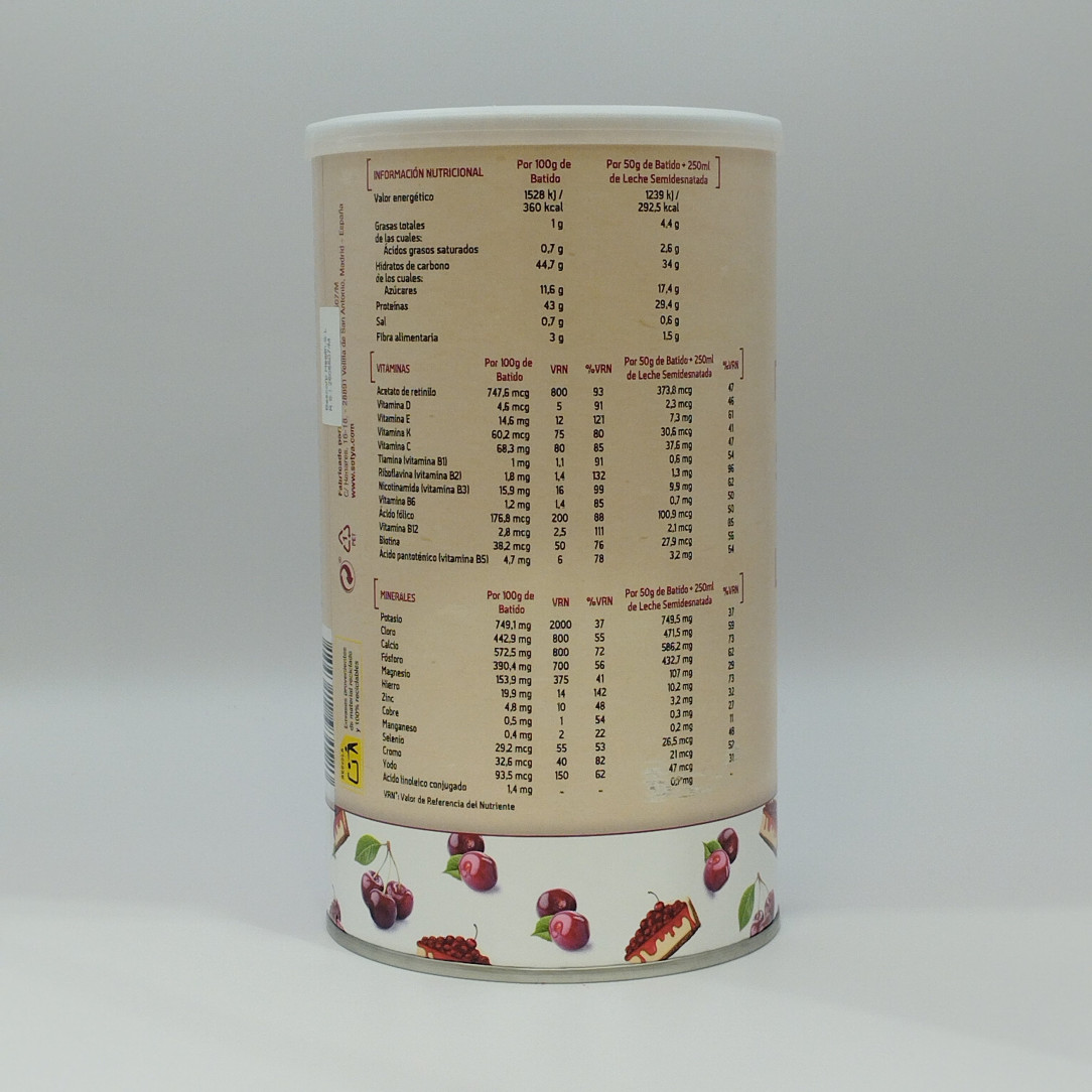 Batido saciante en polvo sabor cereza cheesecake, formulado como sustituto de comida para control de peso. Enriquecido con vitaminas y café verde para mayor saciedad.