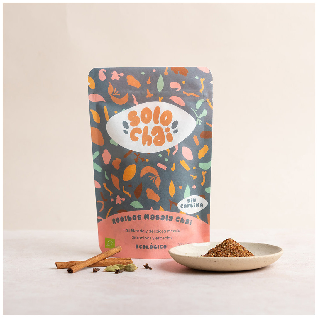 El Rooibos Masala Chai Bio de SoloChai es una mezcla armoniosa de especias ecológicas con rooibos, una planta originaria de Sudáfrica naturalmente libre de teína. Su sabor ligeramente dulce equilibra de forma natural la intensidad de las especias, sin necesidad de añadir azúcares. Es una opción ideal para quienes desean disfrutar de una infusión estilo chai sin los efectos de la cafeína, perfecta para cualquier momento del día.