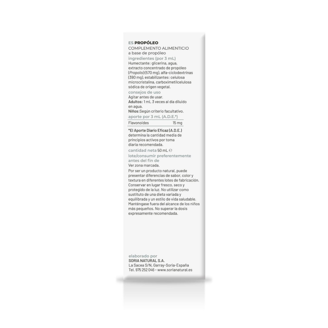 Soria NaturalExtracto de propóleo sin alcohol con alfa-ciclodextrinas, tradicionalmente utilizado como apoyo en temporadas de mayor exigencia para reforzar el bienestar general.
